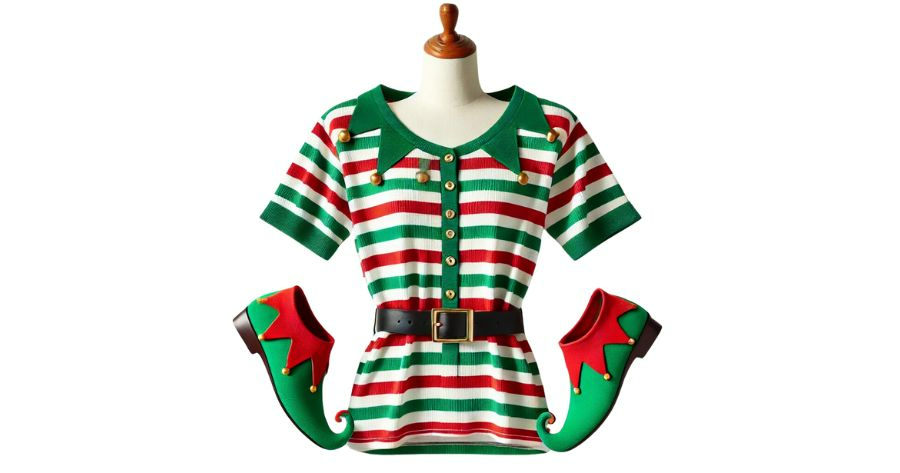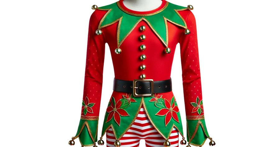 A red and green suit with Jingle bells